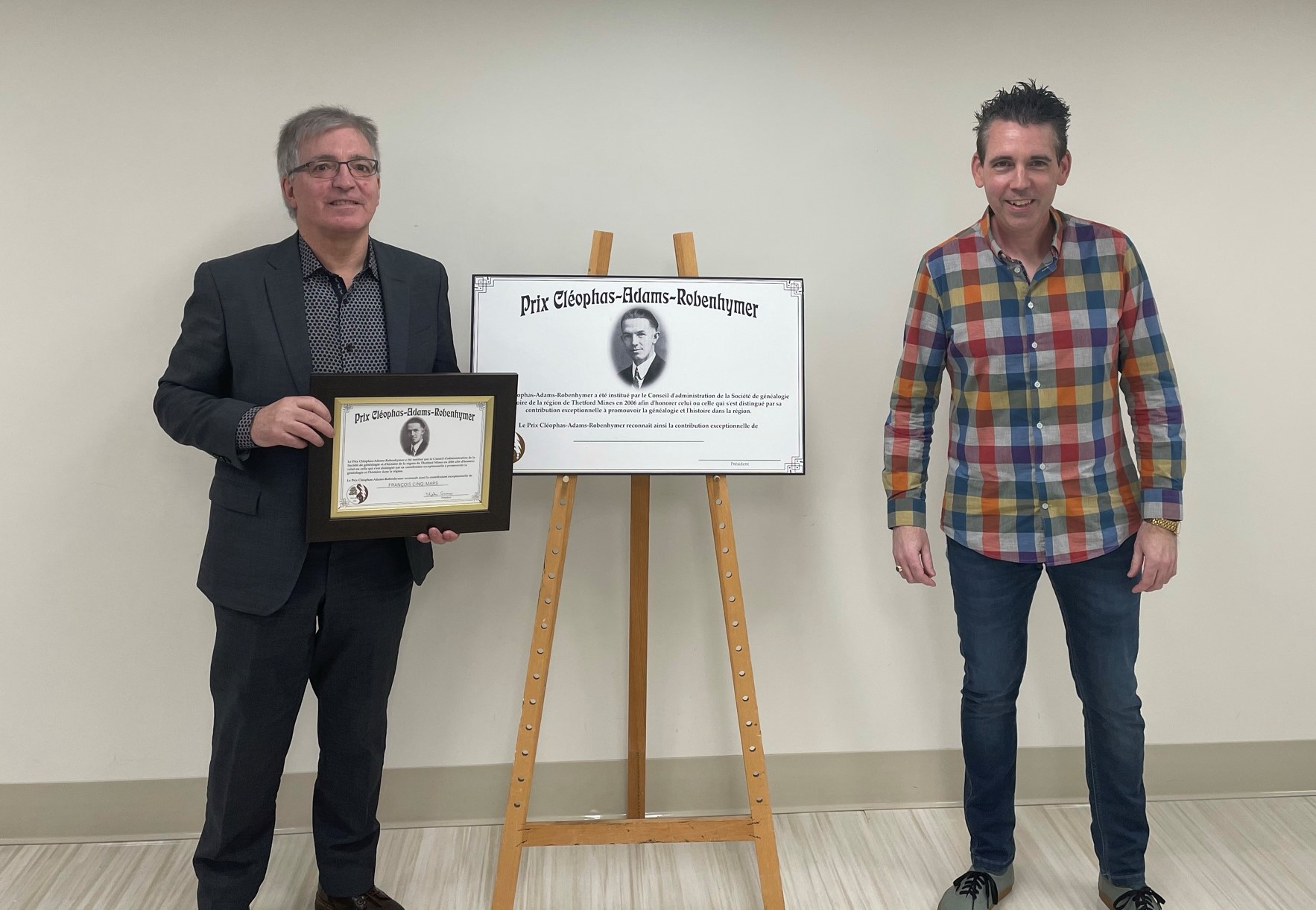 La Société de généalogie et d’histoire de la région de Thetford a récemment décerné le prix Cléophas-Adams-Robenhymer à monsieur François Cinq-Mars, et de façon posthume, à madame Ginette Lessard.