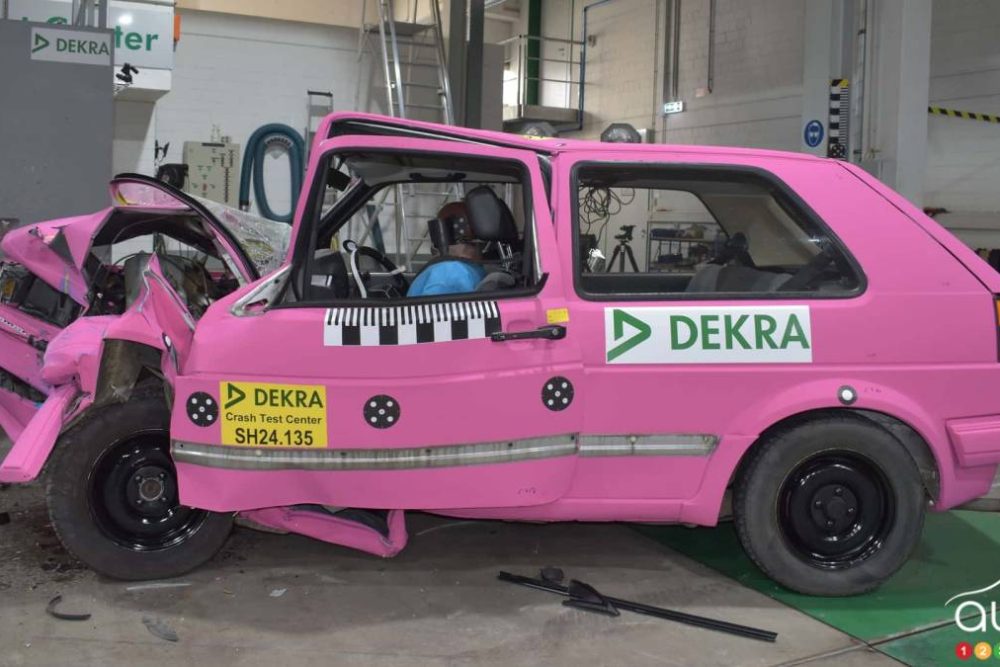 Pour la Golf 2019 qui a été utilisée pour fins de comparaison, le résultat a été très différent : « L’habitacle est resté intact et les occupants ont été très bien protégés par les coussins gonflables frontaux et latéraux, combinés aux ceintures de sécurité, aux systèmes de tension des ceintures. »
