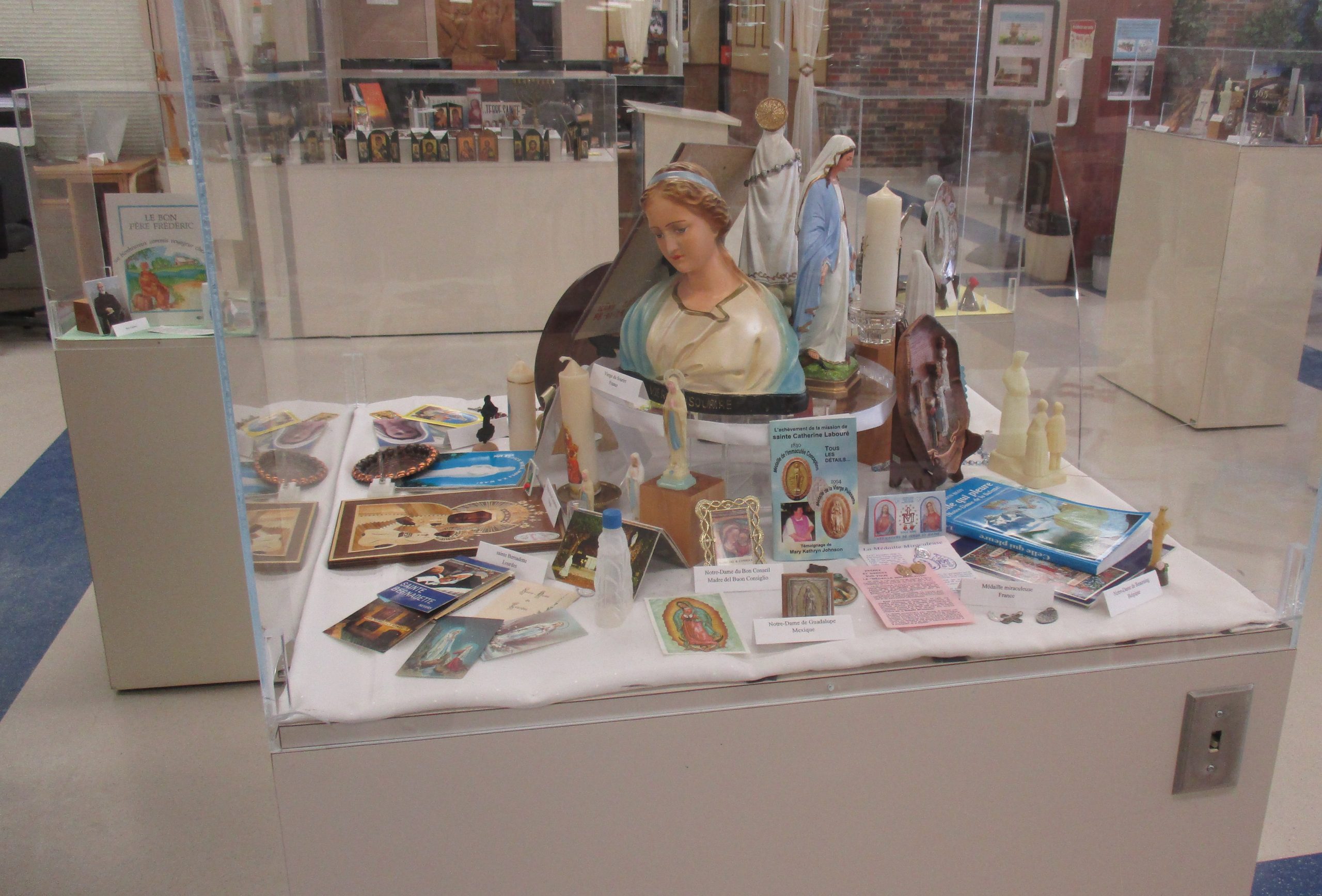 Parmi les lieux de dévotion représentés, notons Sainte-Anne-de-Beaupré, Notre-Dame-du-Cap, Fatima, Lourdes, Jérusalem et Notre-Dame-de-La-Salette en France.