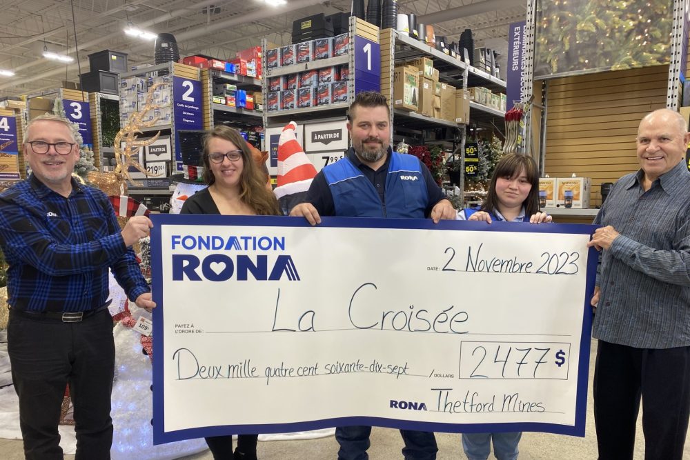 La Fondation RONA, qui chapeaute les activités philanthropiques de l’entreprise du même nom, a donné un coup de main à l’organisme La Croisée de Thetford Mines à hauteur de 2477$ dans le cadre de sa première campagne Bien chez soi.