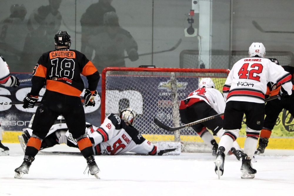 Avec 31,8 secondes à écouler au dernier tiers, l’Assurancia croyait bien avoir créé l’égalité après le retrait du gardien Étienne Marcoux à la faveur d’un sixième joueur. Maxime Lecours a déjoué Anthony Pagliarulo, mais les visiteurs ont contesté la décision des officiels prétextant que Pierre-Maxime Poudrier avait commis de l’obstruction sur leur gardien. Après la révision de la séquence, le but a été refusé, au grand dam des 1024 spectateurs et de l’entraîneur Bobby Baril.