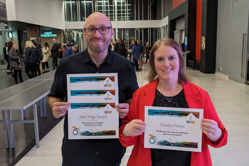 Les journalistes Jean-Hugo Savard et Claudia Fortier du Courrier Frontenac ont été récompensés à l’occasion de la 75e édition des Grands Prix des Hebdos qui s’est tenue le mardi 30 avril à Trois-Rivières.