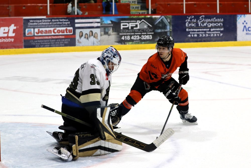 Vendredi à domicile, la formation thetfordoise a perdu 3-0 devant les Éperviers de Sorel-Tracy. Elle s’est heurtée au gardien Philippe Desrosiers qui a repoussé les 37 lancers dirigés vers lui. Même s’il a cédé deux fois, Étienne Marcoux a gardé les siens dans le match en troisième avec quelques arrêts spectaculaires. Le dernier but des visiteurs a été compté dans une cage abandonnée à la fin de l’engagement.