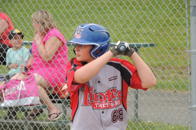 Le samedi 3 juin, la formation thetfordoise visitait le Torrent 2 Beauce-Nord au parc des Loisirs à Saint-Lambert-de-Lauzon. Il y a eu quelques erreurs, mais aussi de très bons coups, comme une flèche attrapée en 3e manche par Brandon Mainville alors qu’il était lanceur ainsi qu’une autre en 4e manche qui a confirmé la victoire de 3 à 1. Mentionnons également Hugo Lessard et Zack Boissonneault qui ont frappé chacun un double en 6e manche et permis au frappeur précédent de croiser le marbre. Hugo a également été nommé joueur du match, car il était le lanceur de la 6e manche avec seulement trois adversaires qui se sont présentés au bâton.